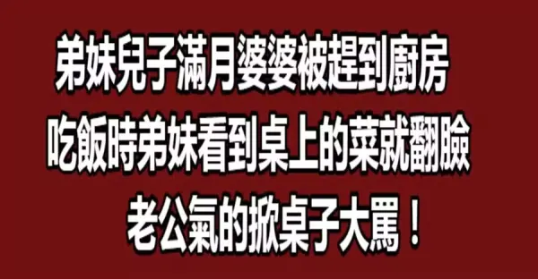 弟妹兒子滿月婆婆被趕到廚房,吃飯時弟妹看到桌上的菜就翻臉,老公氣的掀桌子大罵