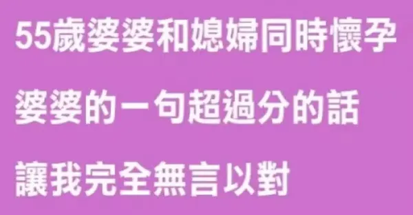 55歲婆婆和我同時懷孕!婆婆的一句超過分的話,讓我完全無言以對