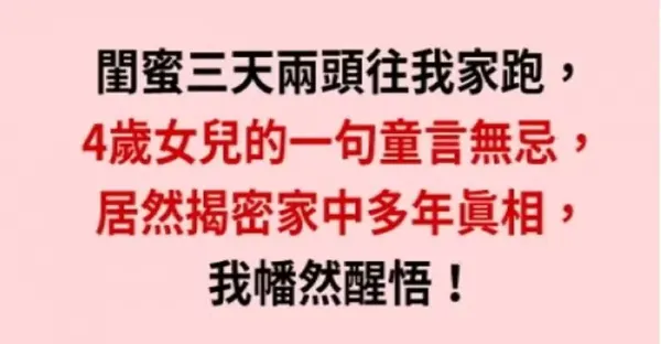 閨蜜三天兩頭往我家跑,4歲女兒的一句童言無忌,居然揭密家中多年真相,我幡然醒悟
