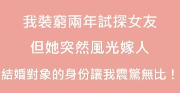 我家很富裕,我裝窮2年試探女友!她知道我家富裕後竟然要分手還突然風光嫁人,新郎的身份卻讓我震驚…我後悔