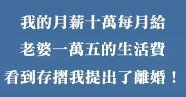 我月薪10萬,每月給老婆1萬5的零用錢,看到存摺我提出了失婚!