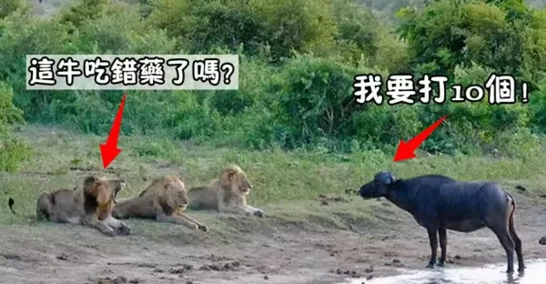 水牛吃錯藥挑釁獅群,見獅群不理睬更是主動進攻,用生命詮釋「不作死就不會死」