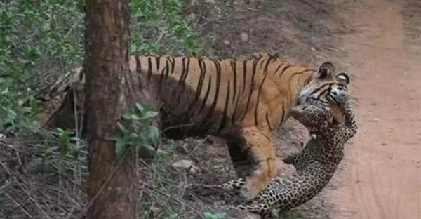 小花豹主動調戲老虎,主動給老虎一豹掌,結果可想而知