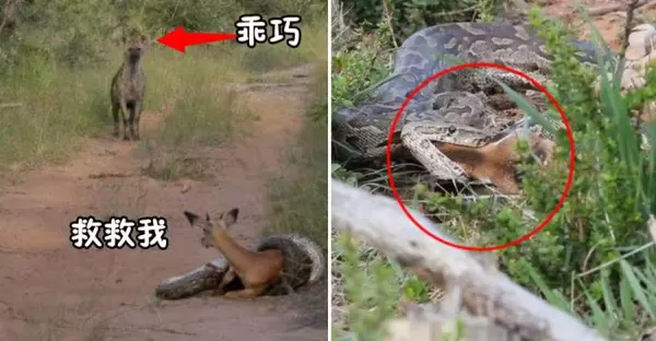 羚羊被巨蟒纏住向鬣狗求救,愛惹事的鬣狗企圖坐收漁翁之利,怎料巨蟒連一塊骨頭都沒剩下