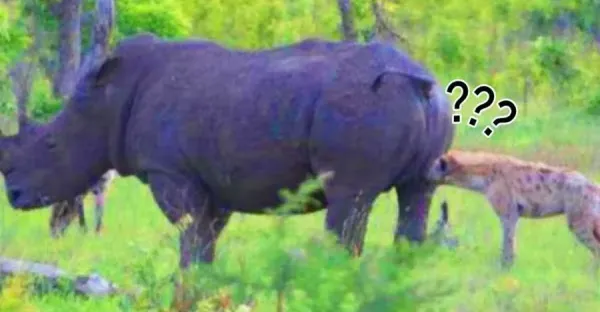 鬣狗想要對落單犀牛「進行掏肛」,奈何遇到一個「不銹肛」:咦?技術減退了??