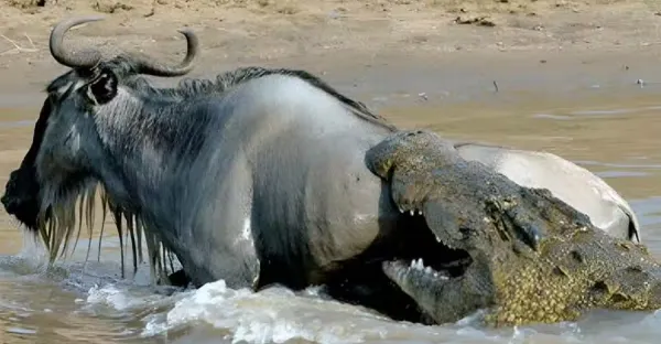 鱷魚死死「咬住角馬」,角馬萬分絕望,一旁的河馬看不下去了!