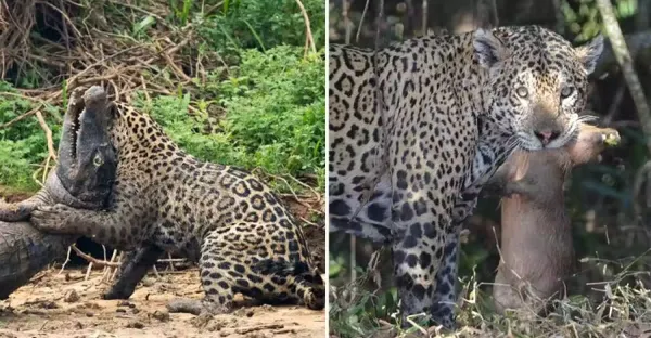 美洲豹河邊喝水,下一秒卻抓到一個「大傢伙」