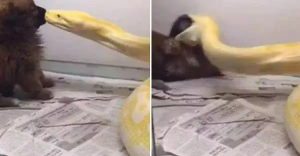 「養蟒人」用流浪狗挑逗黃金巨蟒,只用六秒狗狗化為烏有