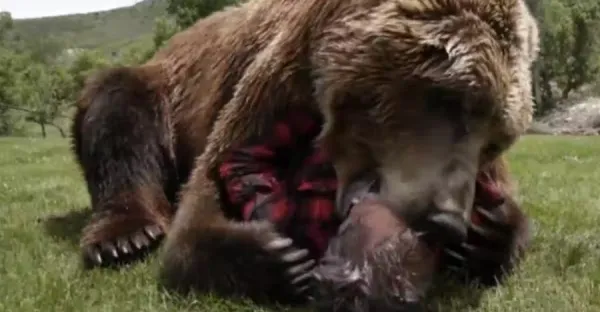 熊張開大口向女人臉上咬去時,卻突然停住,原來這是它的恩人