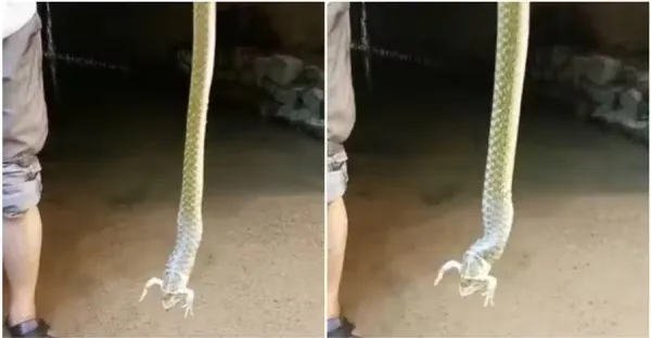 村民抓到長腳的蛇眾人驚呆,請專家解疑,沒想到專家看到蛇就笑了!