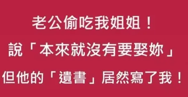 丈夫跟我姊姊外遇!他說「本來想娶的就是妳的姐姐」!失婚數十年後,丈夫過世,而他的遺書居然寫了我