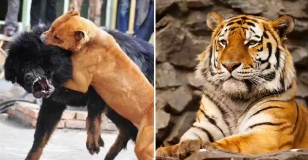 十隻比特犬和一隻老虎關在一起,老虎能堅持多久?老虎:45天吧
