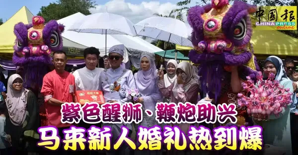 紫色醒獅、鞭炮助興 馬來新人婚禮熱到爆
