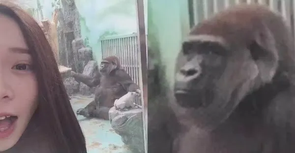 妹子在動物園跟猩猩拍照,回家看照片才發現不對勁