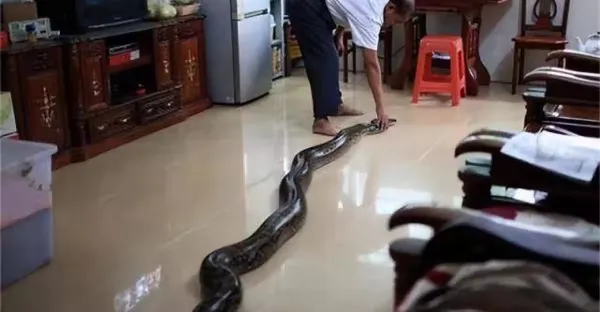 海南小伙救助一條蟒蛇,2001年巨蟒報恩:幫其看家護院,照顧孩子_黃開_冷血動物_小偷
