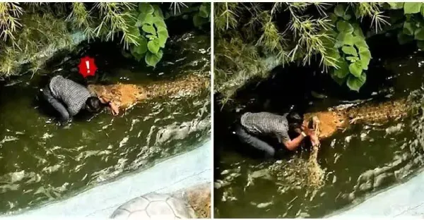 天兵阿北下水「找鱷魚玩自拍」!秒遭鱷吻「水中掙扎」家人驚叫:以為塑膠的啊!