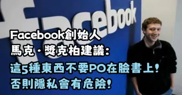 Facebook創始人馬克·獎克柏建議:這5種東西不要PO在臉書上,否則隱私會有危險‼️
