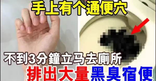 便秘10天拉不出,手上有個通便穴,不到3分鐘立馬去廁所,排出大量黑臭宿便
