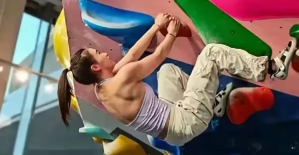 陳芋汐奪冠後攀岩秀髮達背肌,高馬尾颯爽,發育期體重紋絲不動