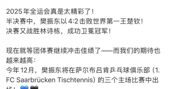 樊振東全運衛冕證明自身價值 他是WTT第一反骨國乒男線未來救星