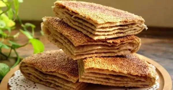 顏值頗高的酥脆千層餅,滿滿的一層芝麻,咬一口滿嘴芝麻香