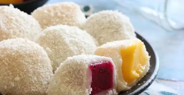 教你做網紅甜品水果糯米糍,滿滿的椰蓉,軟糯的外皮,香甜的水果
