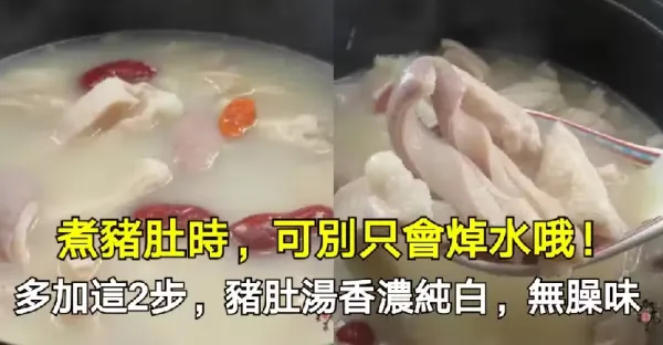 煮豬肚時,可別只會焯水哦!多加這2步,豬肚湯香濃純白,無臊味!