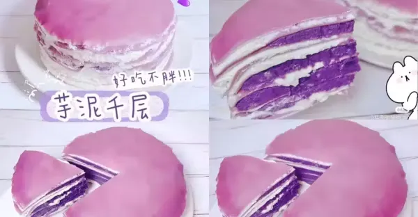🌈免蒸免烤‼️好吃不胖‼️低脂芋泥千層蛋糕💜