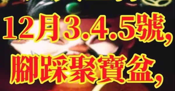 12月3.4.5號開始,6生肖腳踩聚寶盆,開始走好運!