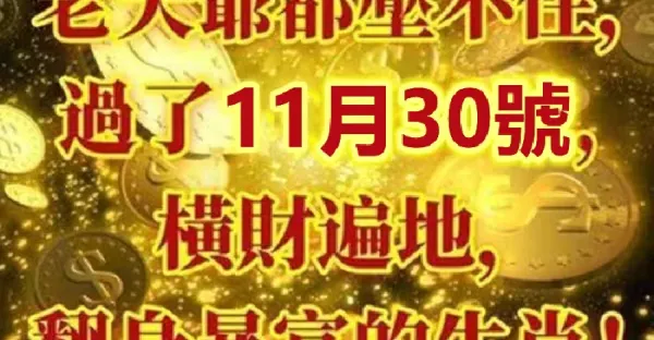 老天爺都壓不住 ,過了11月30號橫財遍地 ,翻身暴富的生肖 !