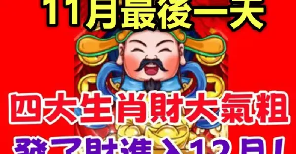 11月最後一天,四大生肖財大氣粗,發了財進入12月~