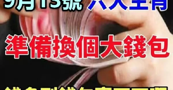 9月13號:六大生肖準備換個大荷包,錢多到錢包塞不下啊!