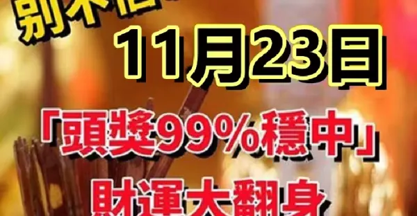 11月23日「頭獎99%穩中」財運大翻身 ,發家致富的生肖!