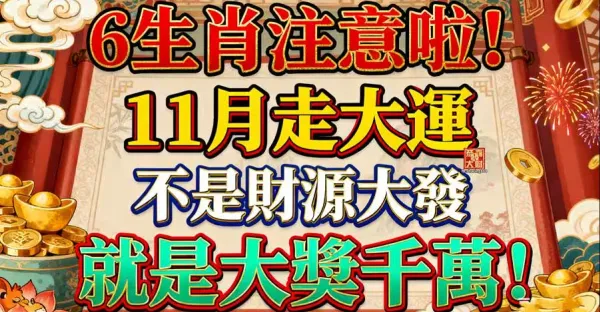 「 明天 11月6號 」 三生肖 橫財最旺