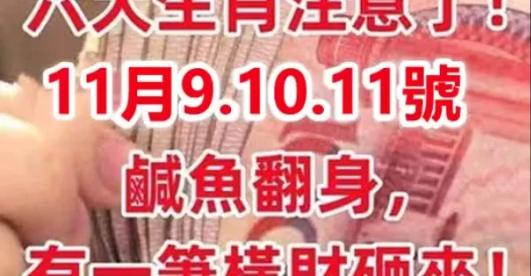 六大生肖注意了!11月9.10.11號鹹魚翻身,有一筆橫財砸來