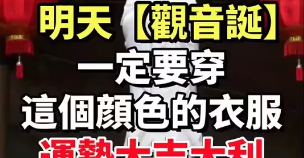 明天【觀音誕】一定要穿「這個顏色的衣服」運勢大吉大利,財運好運不斷~