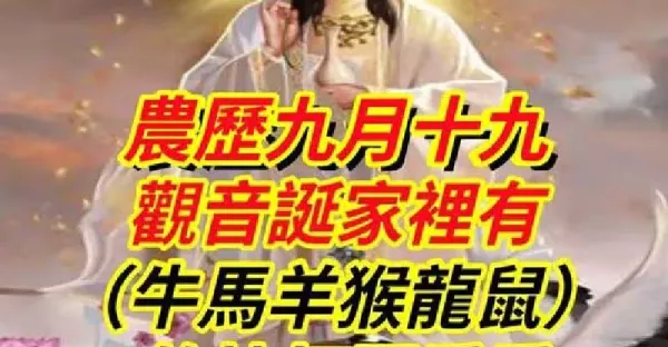 農曆九月十九【觀音誕】家裡有(牛馬羊猴龍鼠)的快打開看看