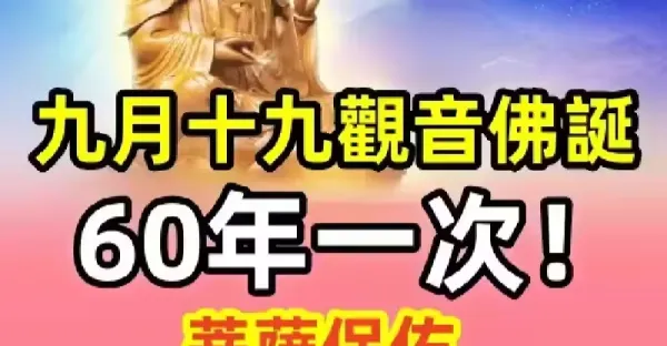九月十九觀音佛誕,60年一次!!觀音菩薩顯靈,4生肖受菩薩庇佑,喜事一件接一件,大發橫財獎,再不接就晚了!