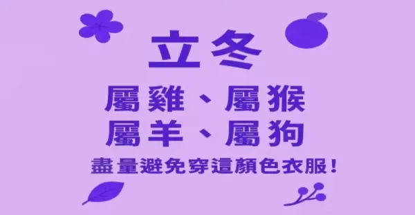 【立冬】屬雞、屬猴、屬羊、屬狗「儘量避免穿這顏色衣服」