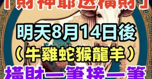 「財神爺送橫財」明天8月14日後,橫財一筆接一筆的生肖