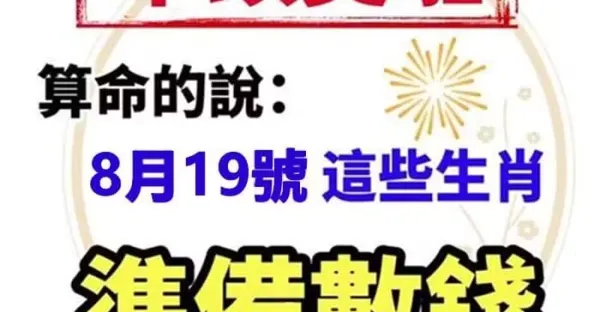 8月19日一筆橫財入命,6個生肖財運當頭,徹底翻身!