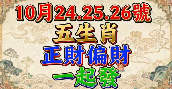 10月24日「頭獎99%穩中」六大生肖財運大翻身,發家致富