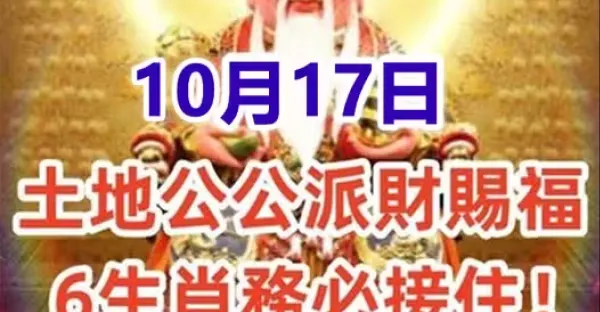 10月17日:土地公公派財賜福,6生肖務必接住!接了就有頭獎中!