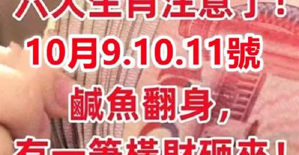 10月9.10.11號鹹魚翻身,有一筆橫財砸來的六大生肖