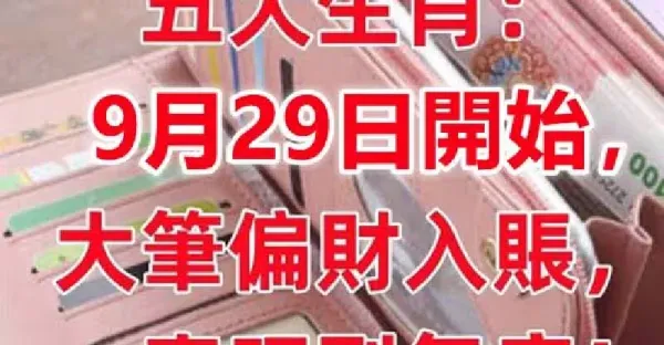 9月29日開始大筆偏財入帳,五大生肖一直旺到年底!
