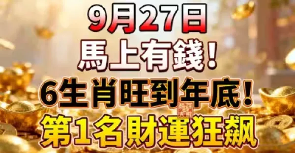 9月27日馬上有錢!6生肖旺到年底!第1名財運狂飆