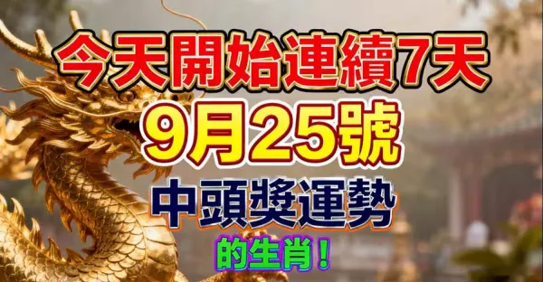 今天開始連續7天(9月25號)中頭獎運勢極高的生肖
