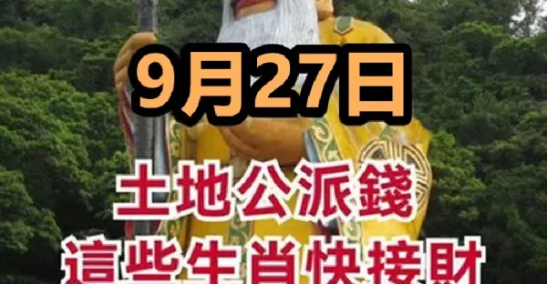 明天 9月27號 三生肖 橫財大旺!