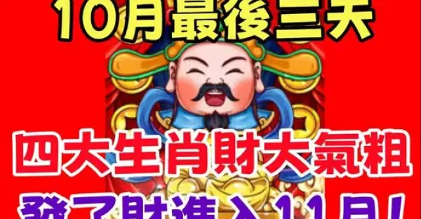 10月最後三天,四大生肖財大氣粗,發了財進入11月