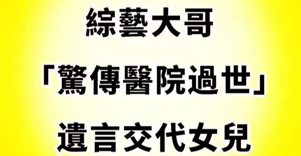 演藝圈震撼彈!綜藝大哥「驚傳醫院過世」 遺言交代女兒「決定樹葬」!